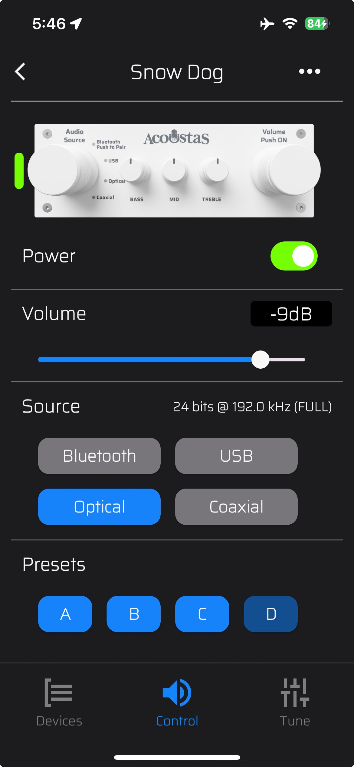 The Acoustas App connects via Wi-Fi to control and fine-tune both the overall sound and each individual channel. With its powerful Presets functionality, you can A/B test settings effortlessly, achieving fast, audible results. The app makes audio system tuning intuitive, rewarding, and — most importantly — 100% fun.